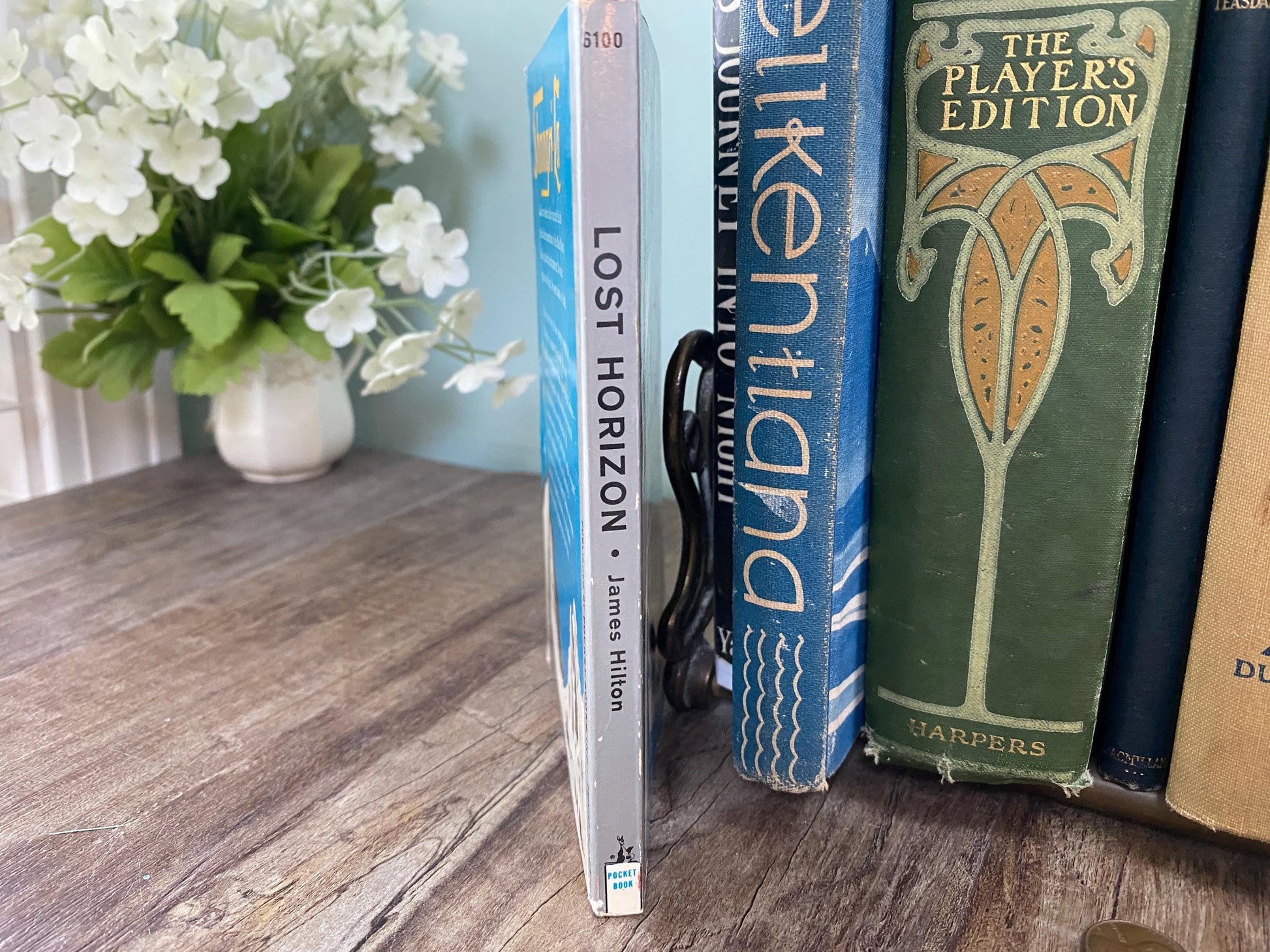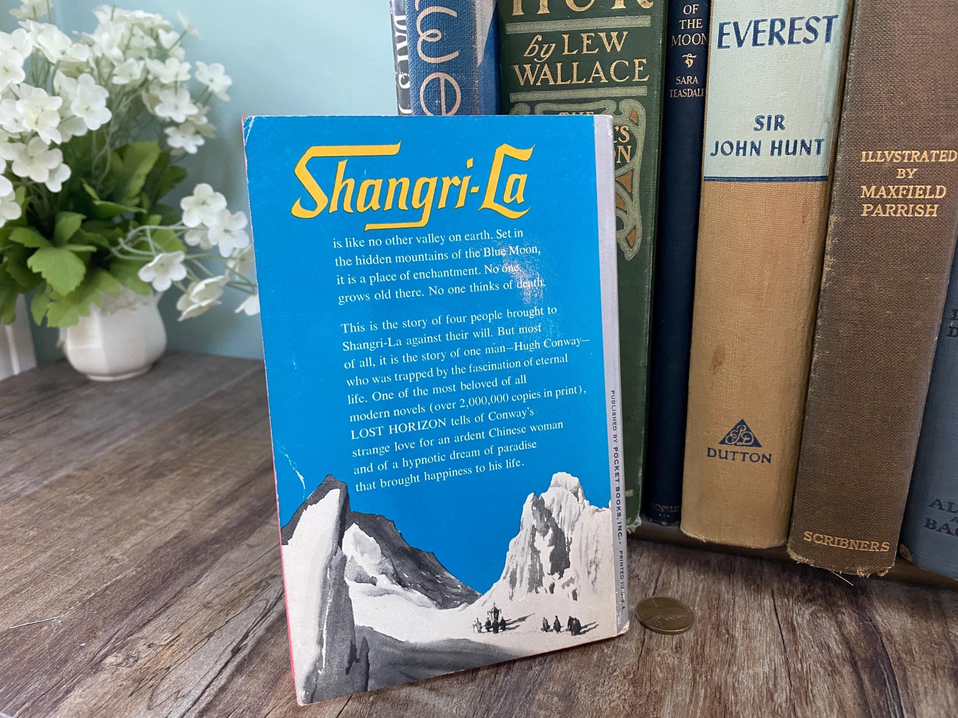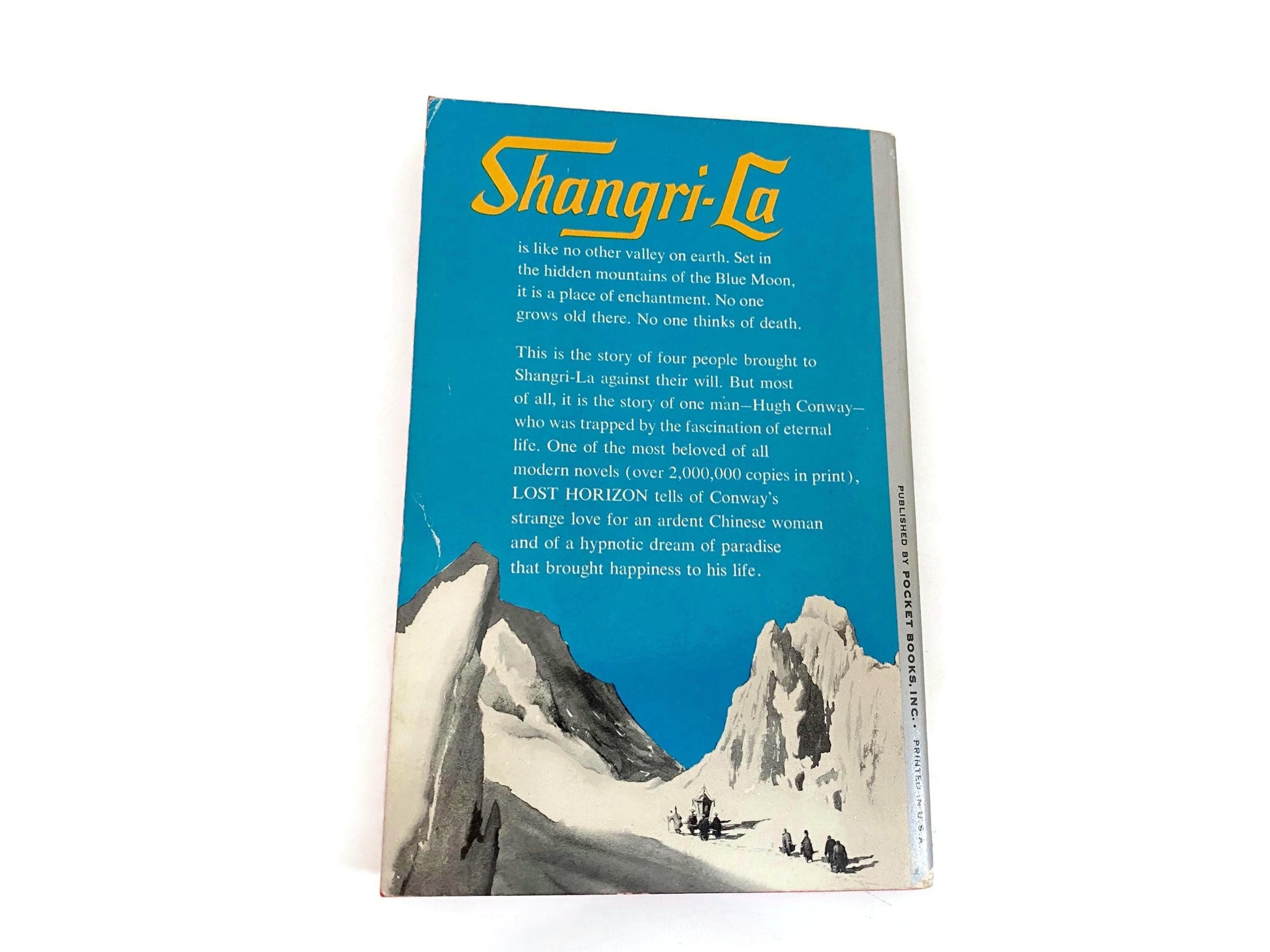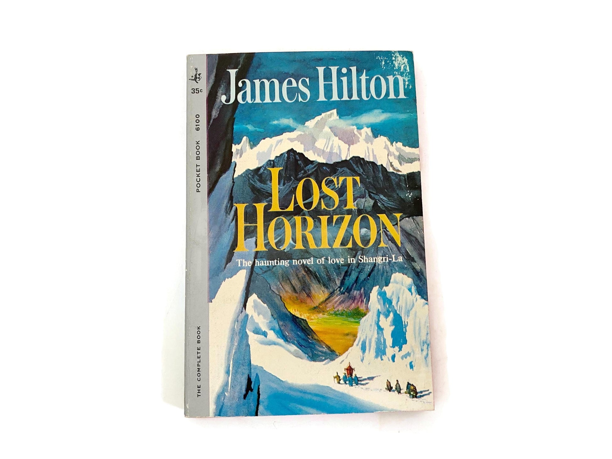 A vintage paperback book, Lost Horizon by James Hilton. The soft cover novel first published in 1939 by Pocket Books, NY., was their first publication; this is the 51st printing: 1962. The book is in very good vintage condition with edge and cover wear; clean pages.