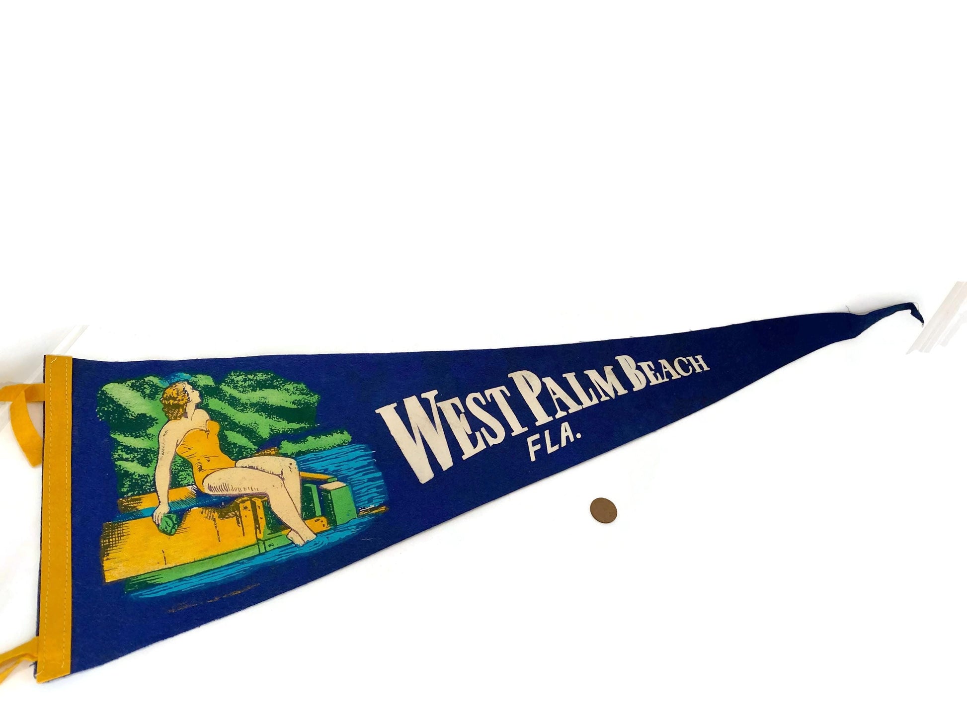 Offered is a vintage a West Palm Beach, Florida pennant; a felt travel souvenir. This is one of the earlier pennant's I've ever seen, circa late 1940s-1950s.